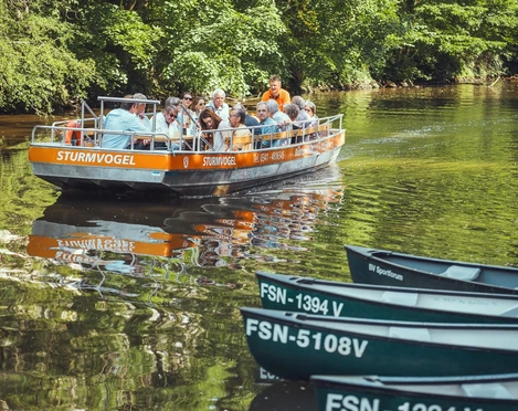 Glühweinfahrten im erleuchteten Motorboot: Im festlich geschmückten Boot gleiten wir durch Leipzigs abendliche Wasserlandschaft. Die Lampen des Bootes wetteifern mit den Lichtern an Land!