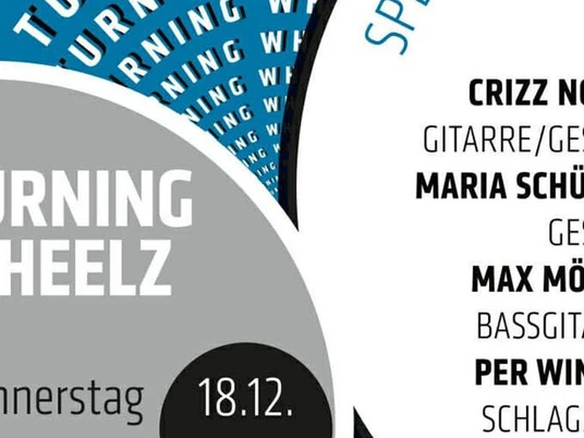 ist für gewöhnlich eine Jamsession mit Ansage und ständig variierender Besetzung. Es werden Musiker verschiedenster Stilrichtungen, welche sonst eher selten oder gar nicht gemeinsam auf der Bühne stehen, zur Teilnahme überredet. Spätestens eine Woche vorher, wenn also auch der Letzte überredet ist, erhält jeder eine abgesprochene Titelauswahl. Auf Grund des allgemein herrschenden Zeitmangels wird auf eine Probe verzichtet. Man begnügt sich mit vorher getroffenen Absprachen. Die Songauswahl versucht den eingeladenen musikalischen Gästen und deren Respekt voreinander gerecht zu werden. Die musikalische Abendgestaltung ist also immer unterschiedlich. Das Turning Wheelz- Grundgefüge bilden Tobias Deutsch am Piano, Maria Schüritz am Mikrophon (Front oder Background, je nach geladenen Gästen) und Edmund Adler an der begleitenden E-gitarre. Ab der zweiten Runde besteht auch immer die Möglichkeit für ein Zusammenspiel mit Gästen aus dem Publikum, welche sich auch gern im Vorfeld bei Turning Wheelz über die Songs informieren, ja sogar einplanen lassen können. Man kann sich also jeden 3. Donnerstag des Monats im Tonellis überraschen lassen.