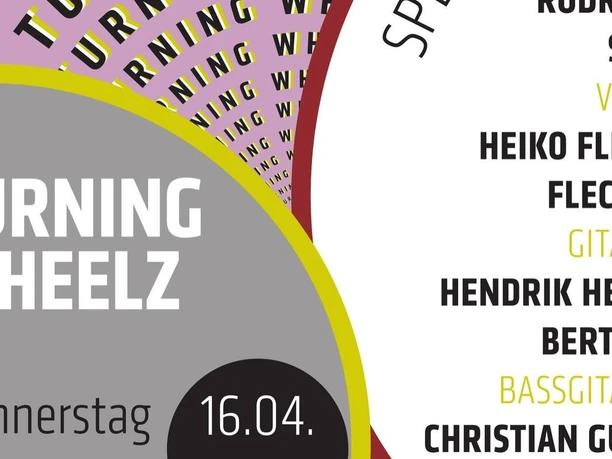 ist für gewöhnlich eine Jamsession mit Ansage und ständig variierender Besetzung. Es werden Musiker verschiedenster Stilrichtungen, welche sonst eher selten oder gar nicht gemeinsam auf der Bühne stehen, zur Teilnahme überredet. Spätestens eine Woche vorher, wenn also auch der Letzte überredet ist, erhält jeder eine abgesprochene Titelauswahl. Auf Grund des allgemein herrschenden Zeitmangels wird auf eine Probe verzichtet. Man begnügt sich mit vorher getroffenen Absprachen. Die Songauswahl versucht den eingeladenen musikalischen Gästen und deren Respekt voreinander gerecht zu werden. Die musikalische Abendgestaltung ist also immer unterschiedlich. Das Turning Wheelz- Grundgefüge bilden Tobias Deutsch am Piano, Maria Schüritz am Mikrophon (Front oder Background, je nach geladenen Gästen) und Edmund Adler an der begleitenden E-Gitarre. Ab der zweiten Runde besteht auch immer die Möglichkeit für ein Zusammenspiel mit Gästen aus dem Publikum, welche sich auch gern im Vorfeld bei Turning Wheelz über die Songs informieren, ja sogar einplanen lassen können. Man kann sich also jeden 3. Donnerstag des Monats überraschen lassen.