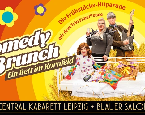 Frühstück im Bett, wer liebt das nicht? Noch besser ist es aber, wenn das Bett im Kornfeld steht und die kulinarischen Köstlichkeiten aus dem Picknick-Korb von den schönsten Schlagern aus den letzten Jahrzehnten begleitet werden. Darum hat das Trio ExperTease eine Frühstückshitparade der Extraklasse zusammengestellt und sogar Himmel und Hölle in Bewegung gesetzt, damit Sie ein Wiedersehen mit Ihren Lieblingsstars erleben können. Selbst mit solchen, die gar nicht mehr unter uns weilen. Leipzigs charmantester Entertainer Bert Callenbach und seine burlesquen Mitstreiterinnen Mitzi von Sacher und Simone de Boudoir von den Lipsi Lillies interpretieren die diversen musikalischen Leckerbissen mit vollem Körpereinsatz, viel komödiantischem Talent und den buntesten Kostümen, die Sie seit den 70er Jahren auf einer Showbühne gesehen haben. Genießen Sie das raffinierte Brunchbuffet in vollen Zügen, denn die überschüssigen Kalorien können Sie beim Mitschunkeln und Mitlachen gleich wieder loswerden. Egal ob es am Ende nun ein Gassenhauer aus den 50er, 70er oder 90er Jahren auf Platz 1 schafft, das Comedy-Trio garantiert Ihnen: So haben Sie diesen Hit noch nie erlebt.