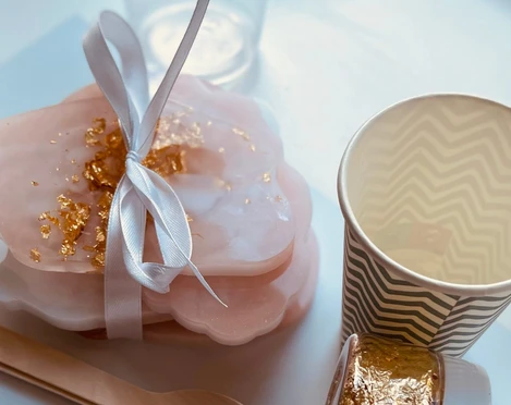 In dem kreativen Kurs bekommst du genug Zeit mit meiner Hilfe und den von mir gestellten Materialien deine eigenen 5 Untersetzer aus Epoxidharz zu gestalten.