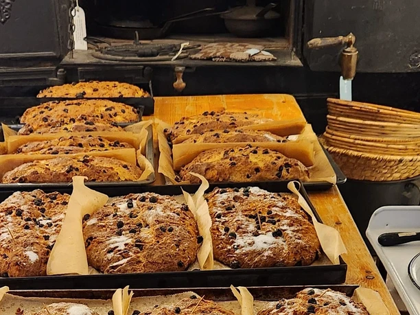 Backen wie zu Uromas Zeiten: Die Gäste können wie in alten Zeiten Teigstücke selbst formen und in unserem Holzofen backen. Nebenher bereiteten sie gemeinsam einen herzhaften Aufstrich zu, um dann alles gemeinsam zu „verputzen“.