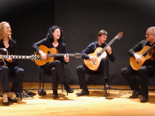 Das Ensemble „guitar4friends“ aus Berlin steht für die tiefe und kreative Verbundenheit der Mitglieder Veronika Vogel, Silke Fell, Georg Kempa und Vitaliy Schall zu ihrem Instrument. Ihre Arrangements stehen in einem lebendigen Dialog der Stile und nehmen das Publikum mit auf eine musikalische Reise, bei der die rhythmische und klangliche Vielfalt der Gitarre voll zur Geltung kommt: Das individuelle Können der aus unterschiedlichen Richtungen kommenden guitar4friends ergibt eine dynamische Verbindung von Elementen aus Klassik, Latin, Swing, Flamenco und Jazz. Durch die vielseitigen Kombinationen von Sologitarre über Duo, Trio bis hin zum Gitarrenorchester im Pocketformat entsteht eine spannungsreiche intensive Performance, die nicht nur Gitarrenfans in ihren Bann zieht. In ihrem Bühnenprogramm “Nacht der Gitarren” werden Klassiker wie Asturias oder der Minor Swing präsentiert, aber auch Stücke der beiden CD-Produktionen “Take4” und “mosaic”. In den vergangenen Jahren hat die Gruppe sich eine große Fan Gemeinde in Deutschland erspielt und geht im Oktober 2024 auf Tour in China.