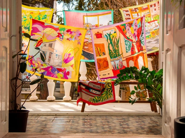 Die Ausstellung Knoten der Zeit bringt Werke von drei Künstler*innen aus dem Kosovo, Bosnien und Herzegowina sowie der Ukraine/Schweiz zusammen. Sie setzen sich mit kulturellen Prägungen auseinander: den Glaubensrichtungen, in die sie hineingeboren wurden, den Städten, in denen sie aufwuchsen, den Berufen ihrer Eltern. Momente aus der Vergangenheit verweben sie zu neuen, fantasievollen Erzählungen, die zum Beispiel um queere Identität oder Familienbeziehungen kreisen. Dabei arbeiten sie künstlerisch mit vielfältigen Materialien und Medien wie Textilien oder dem Back-Handwerk.