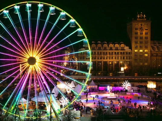 Der Leipziger Eistraum kehrt wieder auf den Augustusplatz zurück und verspricht ein unfassbar fesselndes und magisches Wintererlebnis für alle Besucher:innen. Unmittelbar vor der Leipziger Oper, direkt um den Opernbrunnen befindet sich auch das Highlight des Spektakels: die mit 960 Quadratmetern größte runde mobile Eisbahn Deutschlands! Hier finden sich Anfänger:innen und Fortgeschrittene zusammen und genießen gemeinsam den Eisspaß, der gepaart mit den funkelnden Lichtern ein wirklich ganz besonderes Erlebnis verspricht!