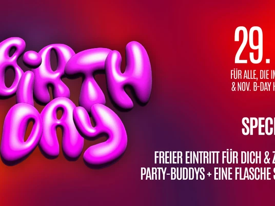 Alle Geburtstagskinder aus dem Oktober und November feiern besonders fett: Melde dich und deine zwei Party-Buddys unter https://gstoo.de/Spizz-Your-Birthday_11_25 an und sichere dir bis Mitternacht freien Eintritt plus eine Flasche Sekt aufs Haus!
