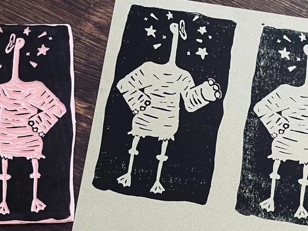 Mit Sibbi (she/her) wirst du aus einem Motiv deiner Wahl einen Linoldruckstempel schnitzen und anschließend einen Papierdruck fertigen. Wenn es die Zeit hergibt, besteht auch die Möglichkeit gegen einen kleinen Aufpreis einen zweiten Stempel herzustellen. Da die gedruckten Papiererzeugnisse eine Trocknungszeit haben, müssen sie vorerst im Laden verbleiben und können in der darauffolgenden Woche bei uns abgeholt werden. Das Material wird gestellt und es sind keine Vorkenntnisse notwending. 💜