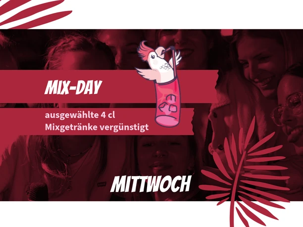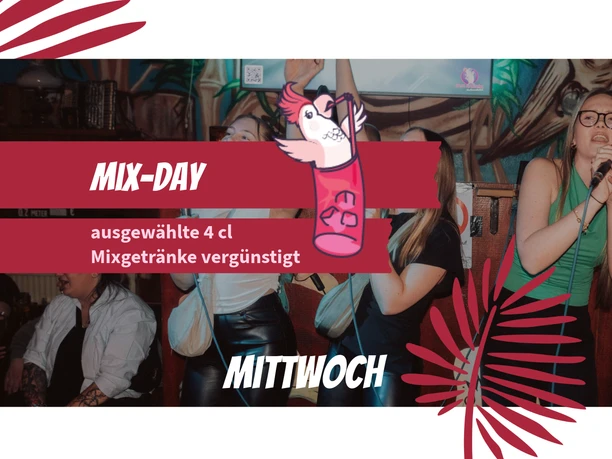 Jeden Mittwoch „MIX-DAY“ mit ausgewählten 4cl-Mixgetränke nur 6,50 €.