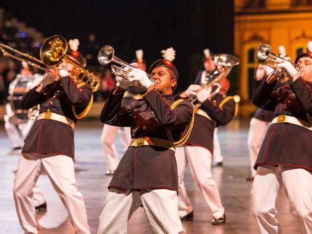 Genießen Sie eine rund dreistündige Show mit anspruchsvoller Livemusik, fesselnden Choreografien und beeindruckenden Uniformen – Erleben Sie ein Feuerwerk an Musik und Farben.