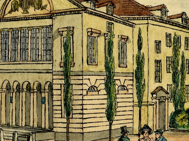 •Abbildung: Das Schauspielhaus (Altes Theater) in Leipzig | Radierung von Christian Gottfried Heinrich Geißler um 1830 | Foto: Christoph Sandig