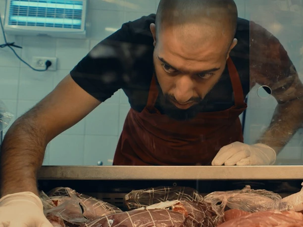 Samir, ein palästinensischer Metzger, der in einem israelischen Supermarkt arbeitet, wird beschuldigt, die Plakate mit den israelischen Geiseln im Pausenraum abgerissen zu haben.
