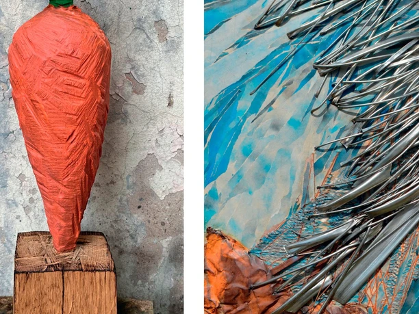 Brunivo Buttarelli, 1946 geboren, lebt in der Nähe von Parma und ist nach 2021 das zweite Mal in unserer Galerie mit zahlreichen, neuen Skulpturen zu sehen. Mit seinen Werken aus Holz, Marmor, Eisen, Papier u.a. Materialien, verleiht er den Dingen