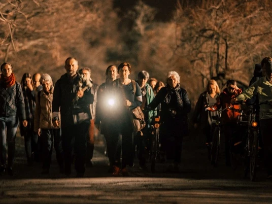 Am Wegrand werden an verschiedenen Punkten die Namen aller Frauen verlesen. Es erklingt Musik, die den Frauen Halt gab.