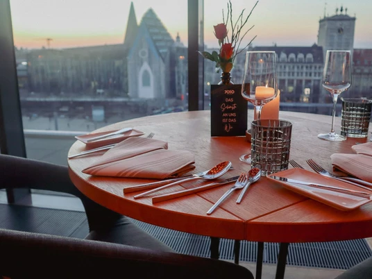 Bei einem romantischen 4-Gang Menü inklusive Weinbegleitung und einem herrlichen Blick auf den Augustusplatz genießt Ihr den Valentinstag!