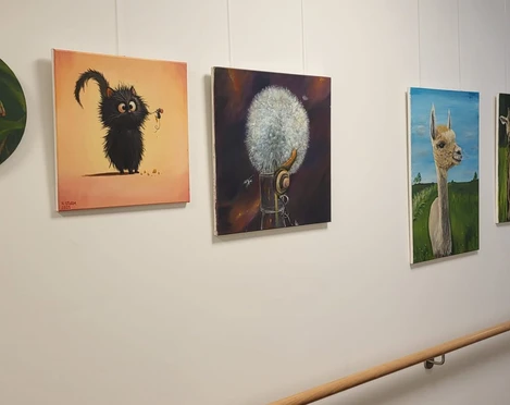 „Am 30. Oktober öffnen wir ein weiteres Mal unsere Hospiztüren und laden zur offiziellen Ausstellungseröffnung ein. Die farbenfrohe Bildkunst erhellt unseren Hospizgästen für die nächste Zeit die „dunkle Jahreszeit“.“