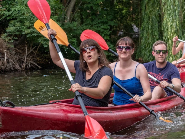 3er Canadier ausleihen, Paddeln zum Cospudener See und Rücktransport von uns