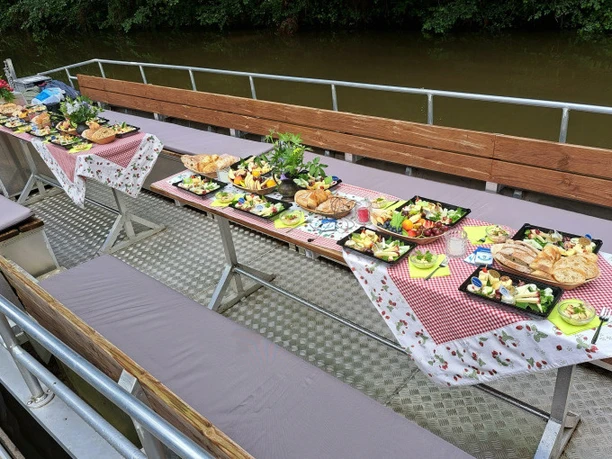 Heute möchten wir Ihnen eine ganz besondere Tour anbieten. Eine Bootstour mit Käseverkostung auf der Pleiße durch den schönen südlichen Auwald. Während wir mit dem Elektroboot fahren, bieten wir Ihnen 8 Sorten Käse (Kuh / Schaf / Ziege) vom Leipziger Käsehaus Lehmann und aus der Region, umhüllt mit Geschichten und Wissenswertes, zur Verkostung an.