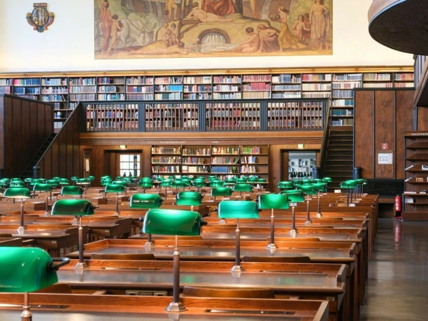 Diese und viele weitere Fragen werden während der Führung beantwortet. Auf Ihrem Weg durch das Haus erläutert Ihr Gästeführer selbstverständlich auch spannende Kunstwerke, die mit der Geschichte und Identität der Bibliothek verbunden sind.