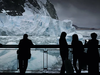 Das 32 Meter hohe Panorama ANTARKTIS von Yadegar Asisi zeigt eine der lebensfeindlichsten und zugleich faszinierendsten Regionen dieser Welt - die Antarktis. Das Rundbild führt genau dorthin, wo Wasser und Eis in der antarktischen Küstenlandschaft aufeinandertreffen. Über der Wasseroberfläche ragen gewaltige Eisformationen in den Himmel, während sich darunter ein fragiles und erstaunlich vielfältiges Ökosystem mit Walen, Pinguinen, Seeleoparden und Robben zeigt.