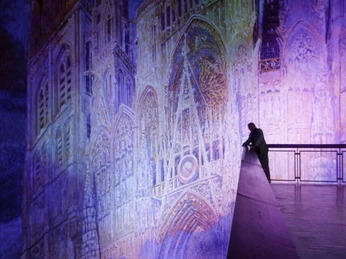 Mit dem Panorama DIE KATHEDRALE VON MONET führt Yadegar Asisi den Besucher in die Zeit des Impressionismus. Er zeigt die französische Stadt Rouen Ende des 19. Jahrhunderts und zelebriert die Kathedrale der Stadt in vielfältigen Farbnuancen, Schattierungen und Lichteinfällen. Das Besondere: Das Panorama wurde von Asisi als erstes Panorama komplett in Öl auf eine ca. 6 x 2 Meter große Leinwand gemalt, bevor es anschließend vergrößert für das Panometer ausgedruckt wurde. Die Besucher tauchen direkt in das Werk ein und erleben die Ölmalerei als Kunstform in einem nie dagewesenen immersiven Erlebnis.