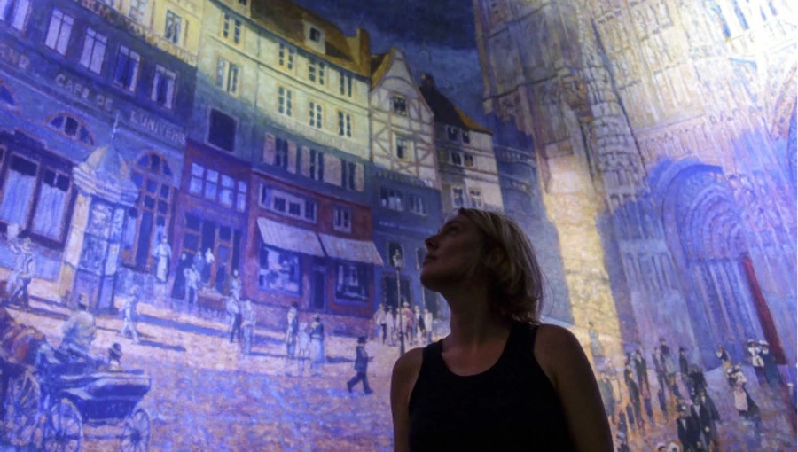 Mit dem Panorama DIE KATHEDRALE VON MONET führt Yadegar Asisi den Besucher in die Zeit des Impressionismus. Er zeigt die französische Stadt Rouen Ende des 19. Jahrhunderts und zelebriert die Kathedrale der Stadt in vielfältigen Farbnuancen, Schattierungen und Lichteinfällen. Das Besondere: Das Panorama wurde von Asisi als erstes Panorama komplett in Öl auf eine ca. 6 x 2 Meter große Leinwand gemalt, bevor es anschließend vergrößert für das Panometer ausgedruckt wurde. Die Besucher tauchen direkt in das Werk ein und erleben die Ölmalerei als Kunstform in einem nie dagewesenen immersiven Erlebnis.