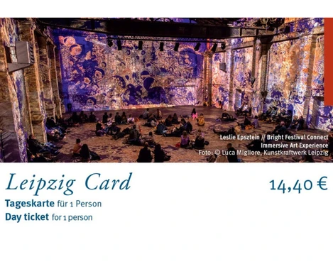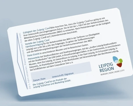 Wichtiger Hinweis zur Buchung: Wir senden Ihnen die LEIPZIG CARD innerhalb einer Woche (Blankokarte) zu und Sie entscheiden, wer die LEIPZIG CARD wann zum ersten Mal benutz und wann die Gültigkeit beginnt. Bitte klicken Sie bei der Bestellung dennoch irgend einen Termin in der Zukunft an. Dieser muss aus technischen Gründen gewählt werden und hat nichts mit der Gültigkeit der LEIPZIG CARD zu tun.