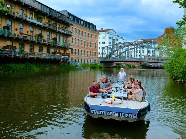 Auf dem Weg zum Karl-Heine-Kanal erkundet ihr die schönsten Flüsse in Leipzig. Der Anwalt, Unternehmer und Industriepionier Dr. Carl Heine war maßgeblich an der städtebaulichen Entwicklung des Leipziger Westens beteiligt. Bestaunt auch das beeindruckende Stelzenhaus an der letzten Station der Tour, bevor ihr mit tollen Erinnerungen im Gepäck zum Hafen zurückkehrt. Der Hafen ist ideal gelegen, wenn ihr nach der Motorbootfahrt weitere Sehenswürdigkeiten von Leipzig erkunden möchtet.