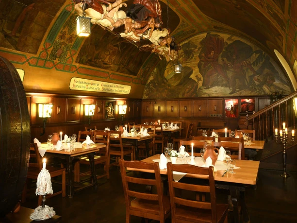Im Auerbachs Keller, einem der traditionsreichsten Gasthäuser Deutschlands und Schauplatz einer berühmten Szene aus „Faust“, erwartet Sie ein besonderes Oster-Erlebnis. Im eleganten Salon Anton Mädler, in dem das beeindruckende Gemälde „Osterspaziergang“ von M. Molitor hängt, genießen Sie das exklusive Mephisto-Kaffeegedeck. Dazu gehört ein Stück der legendären Mephistotorte – ein süßes Meisterwerk – sowie ein „Scheelchen Heeßen“, wie der Kaffee in Sachsen liebevoll genannt wird.